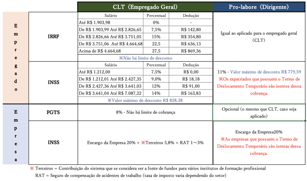 ③ Os custos e deduções legais são iguais tanto para quem é pro labore quanto para quem é empregado?